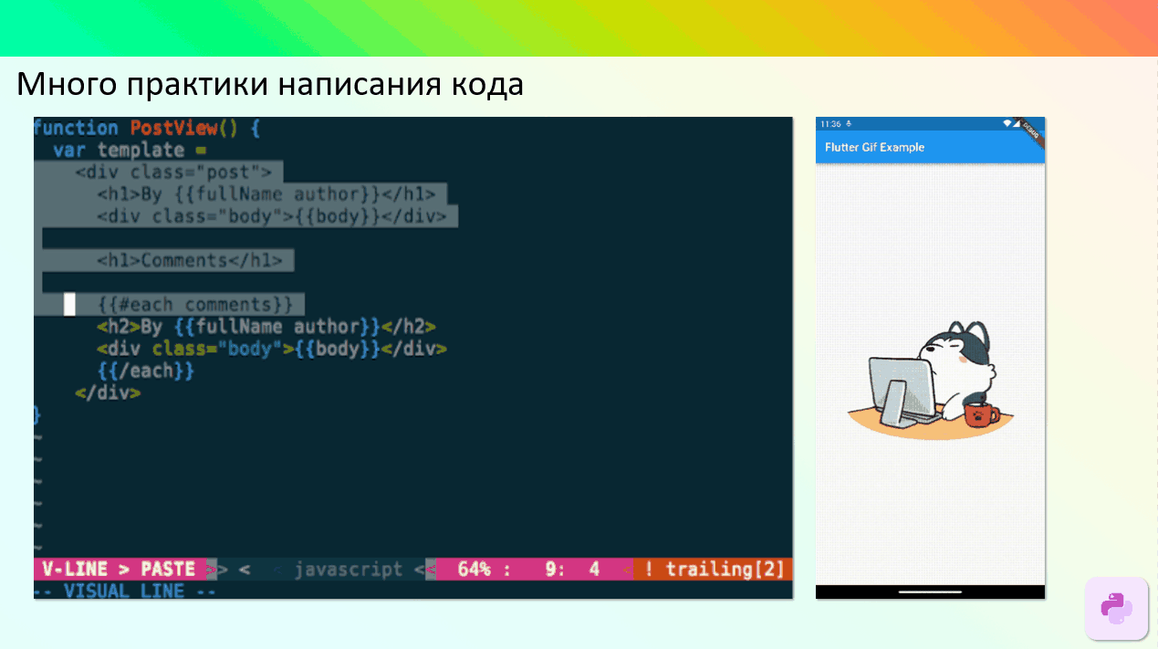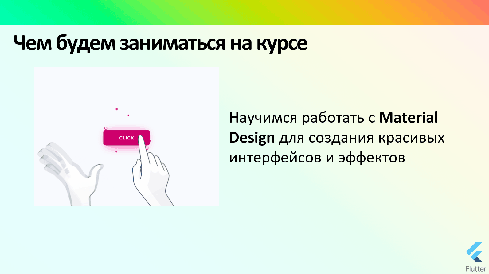 Главное внимание уделим языку программирования Dart и фреймворку Flutter