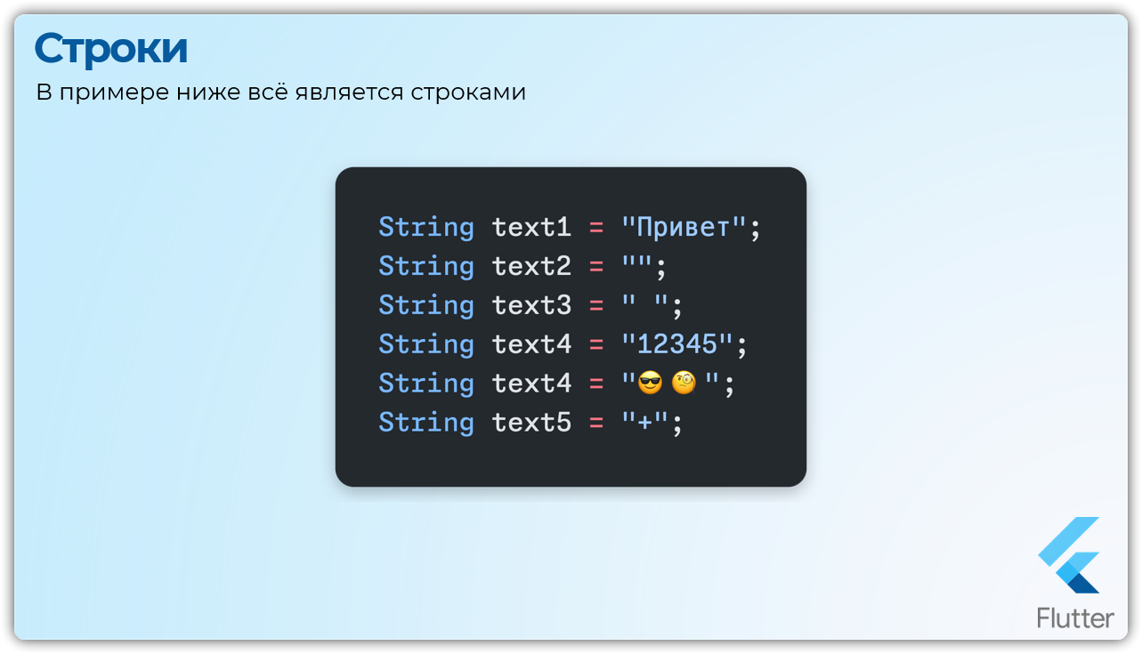 String text5 = "😎🧐"; // Строка может содержать эмодзи!