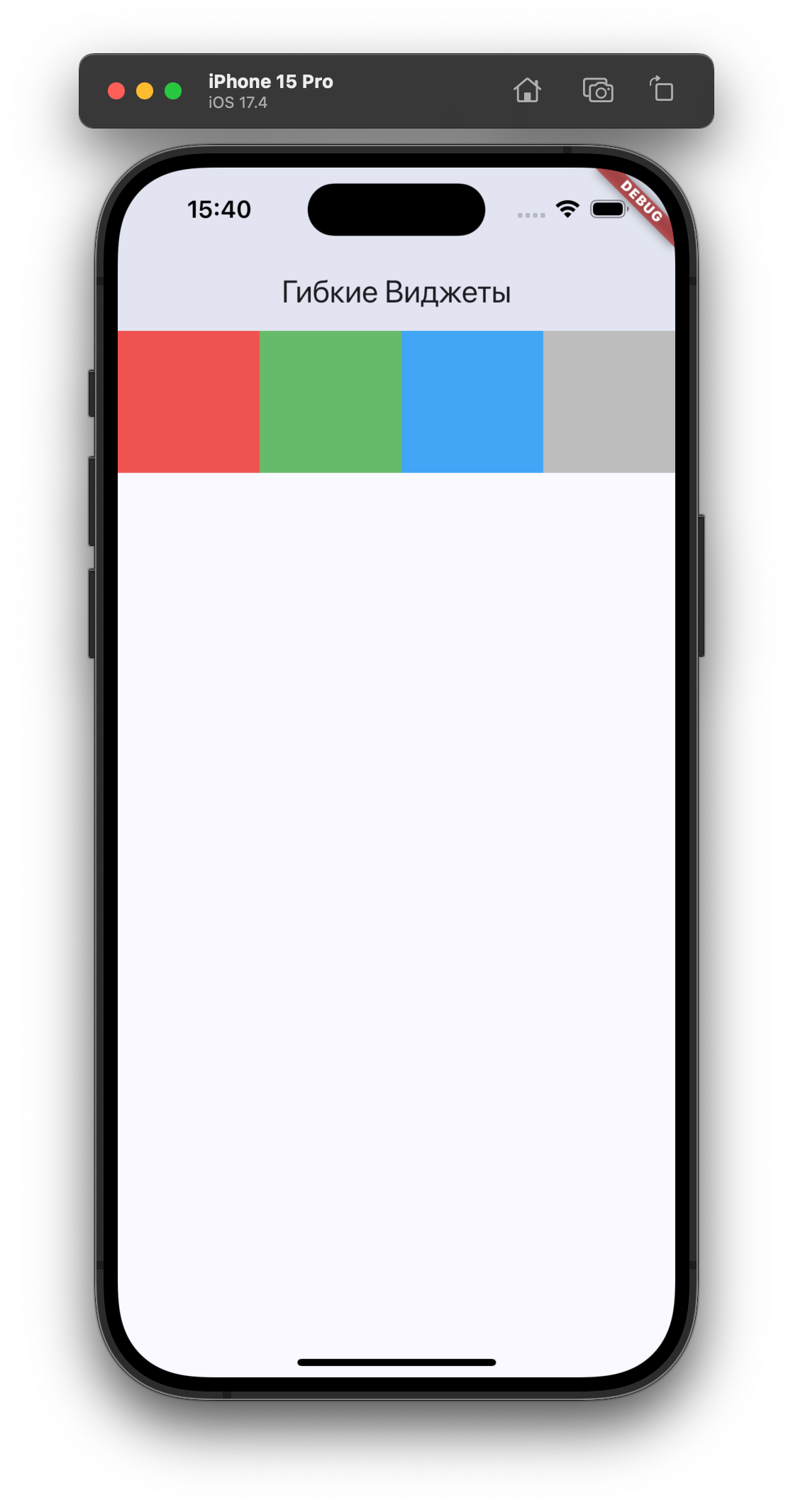 Для иллюстрации примера гибких виджетов, добавим еще один виджет, который будет представлять из себя цветной прямоугольник.
