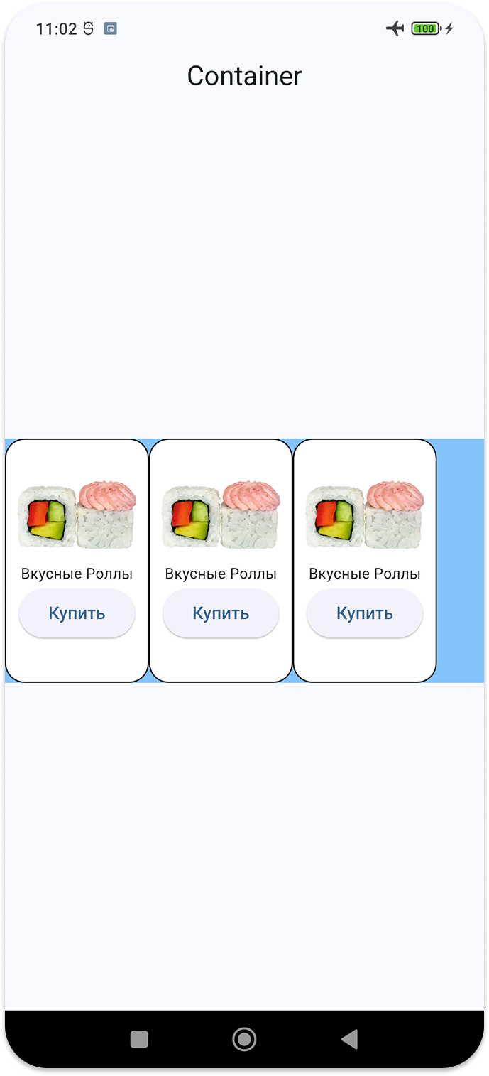 Для демонстрации этой возможности, добавим несколько карточек с роллами и обернёх их в строку или колонку.