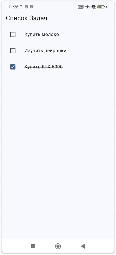 Task(text: 'Купить RTX 5090', isDone: true), // Пример выполненной задачи