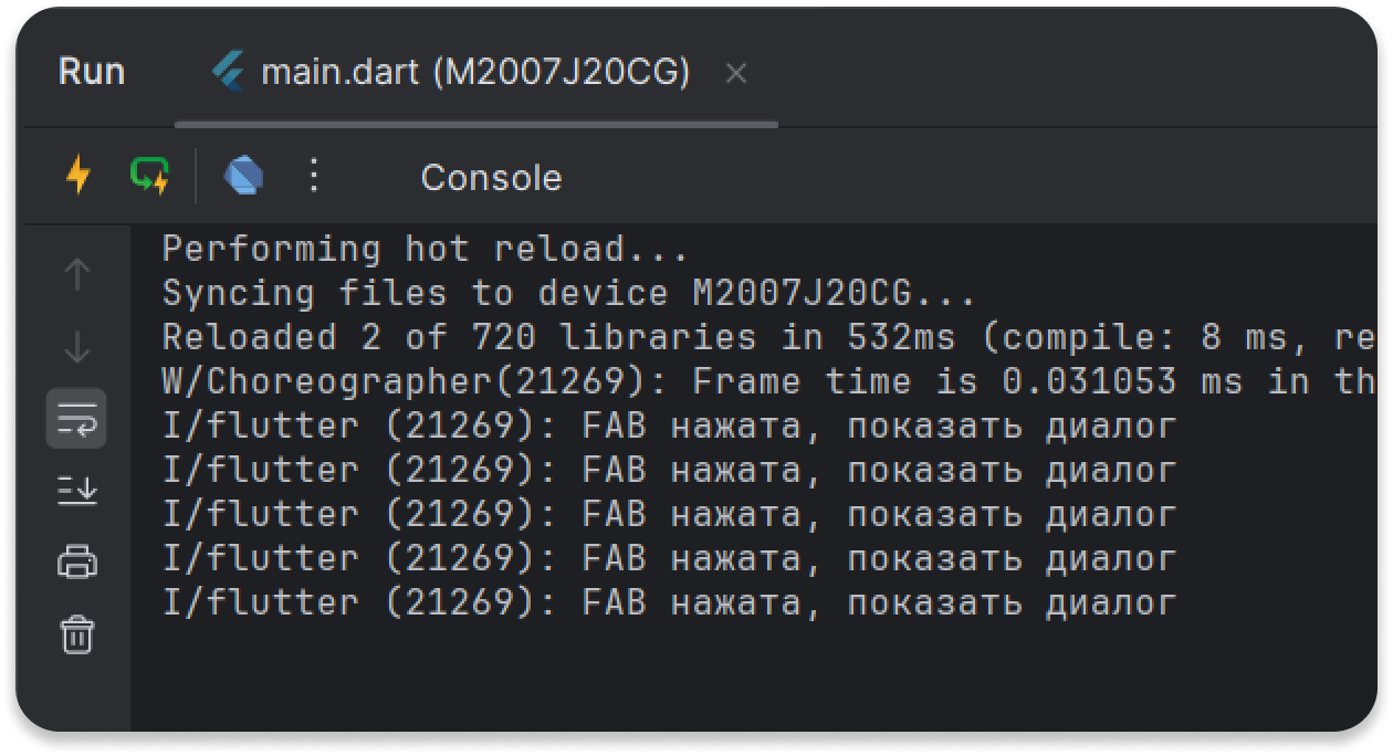 Виджет FloatingActionButton - это круглая кнопка с иконкой, которая "плавает" над пользовательским интерфейсом, обычно в правом нижнем углу экрана. Она предназначена для выполнения основного действия на текущем экране.