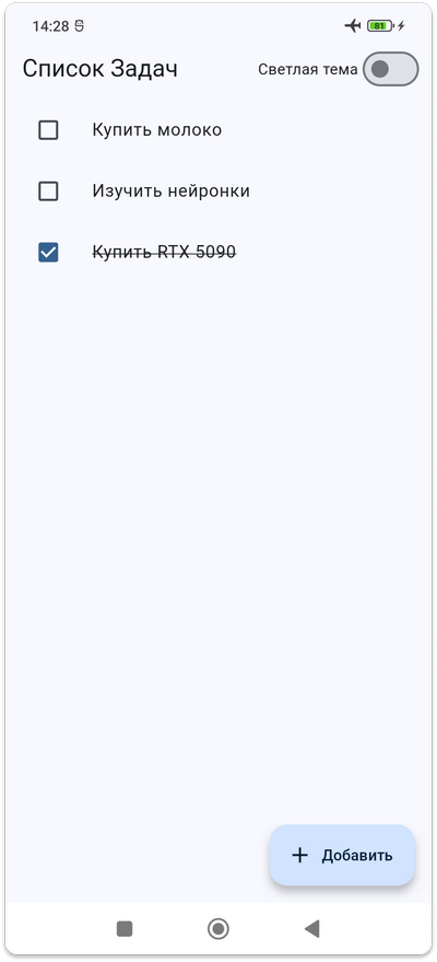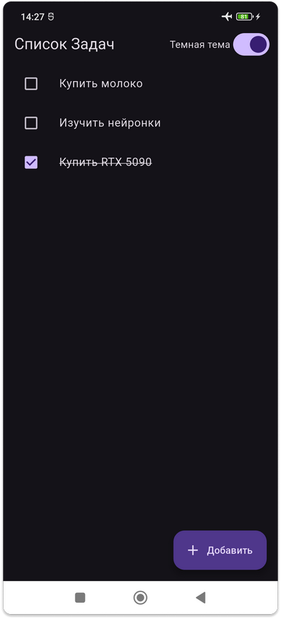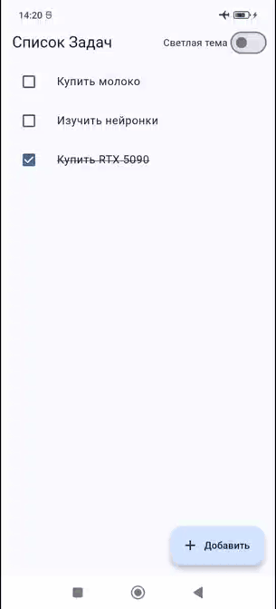 Task(text: 'Купить RTX 5090', isDone: true), // Пример выполненной задачи