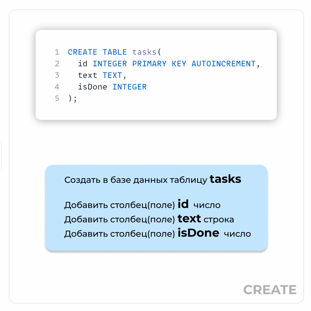 isDone INTEGER -- Целочисленное поле (0 или 1)